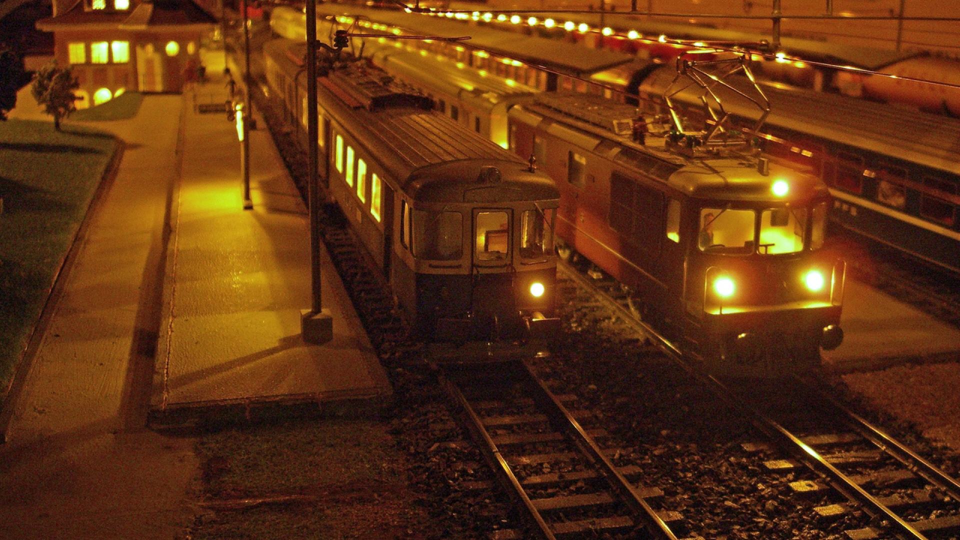 Kandersteg aus den 60er Jahren ist wieder auferstanden. Die Anlage läuft mit echtem Oberleitungsbetrieb. Das ganze Areal, d.h. Gleise, Unterbau (Holz), Weichen, Oberleitungsmasten, stammen aus der "Morgensonne".