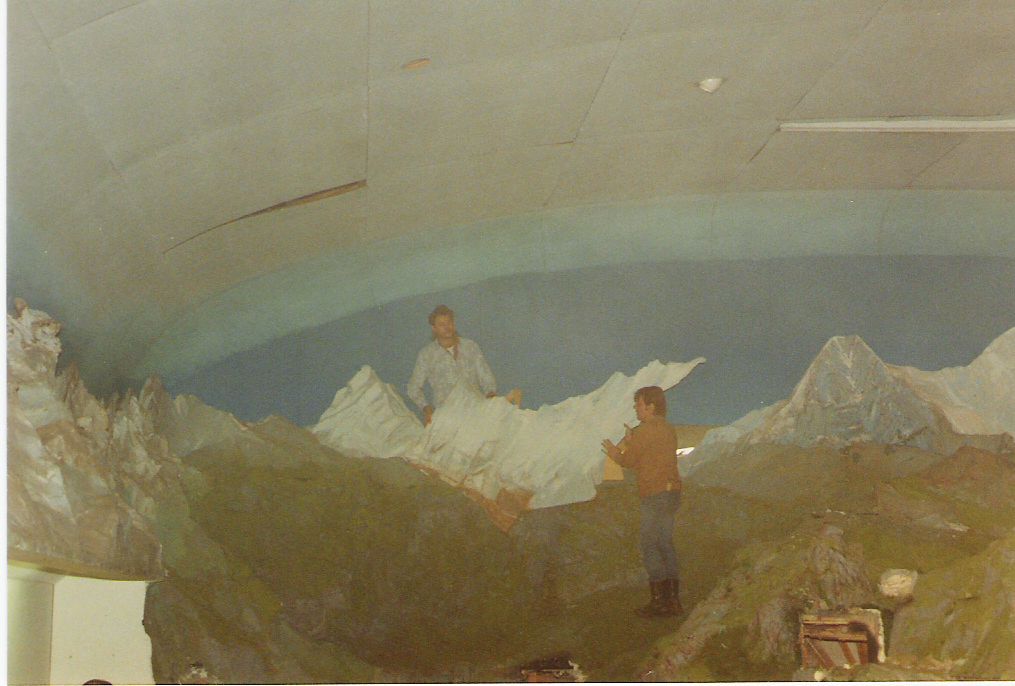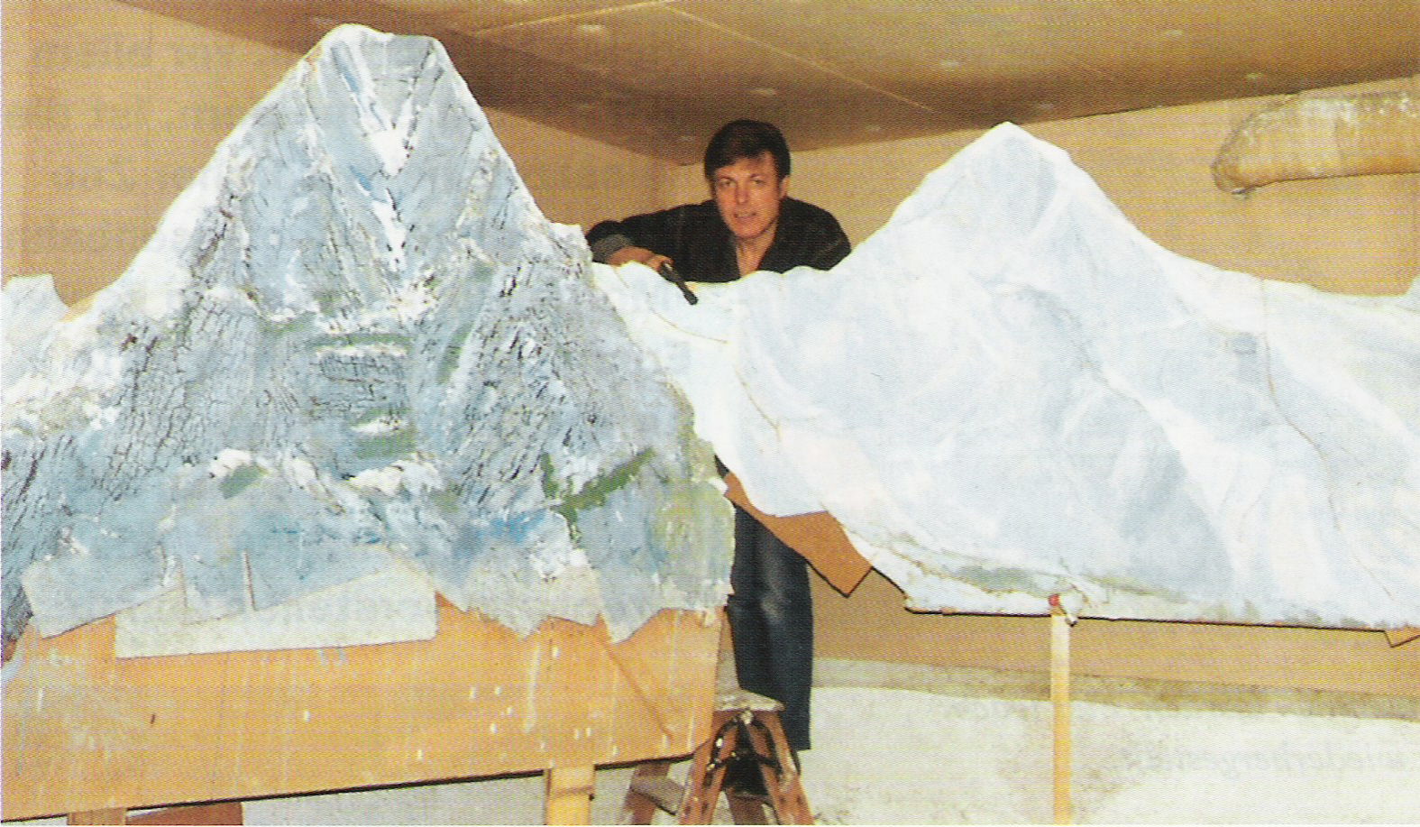 • Wiederaufbau der "Morgensonne"-Kulisse mit Eiger, Mönch und Jungfrau.