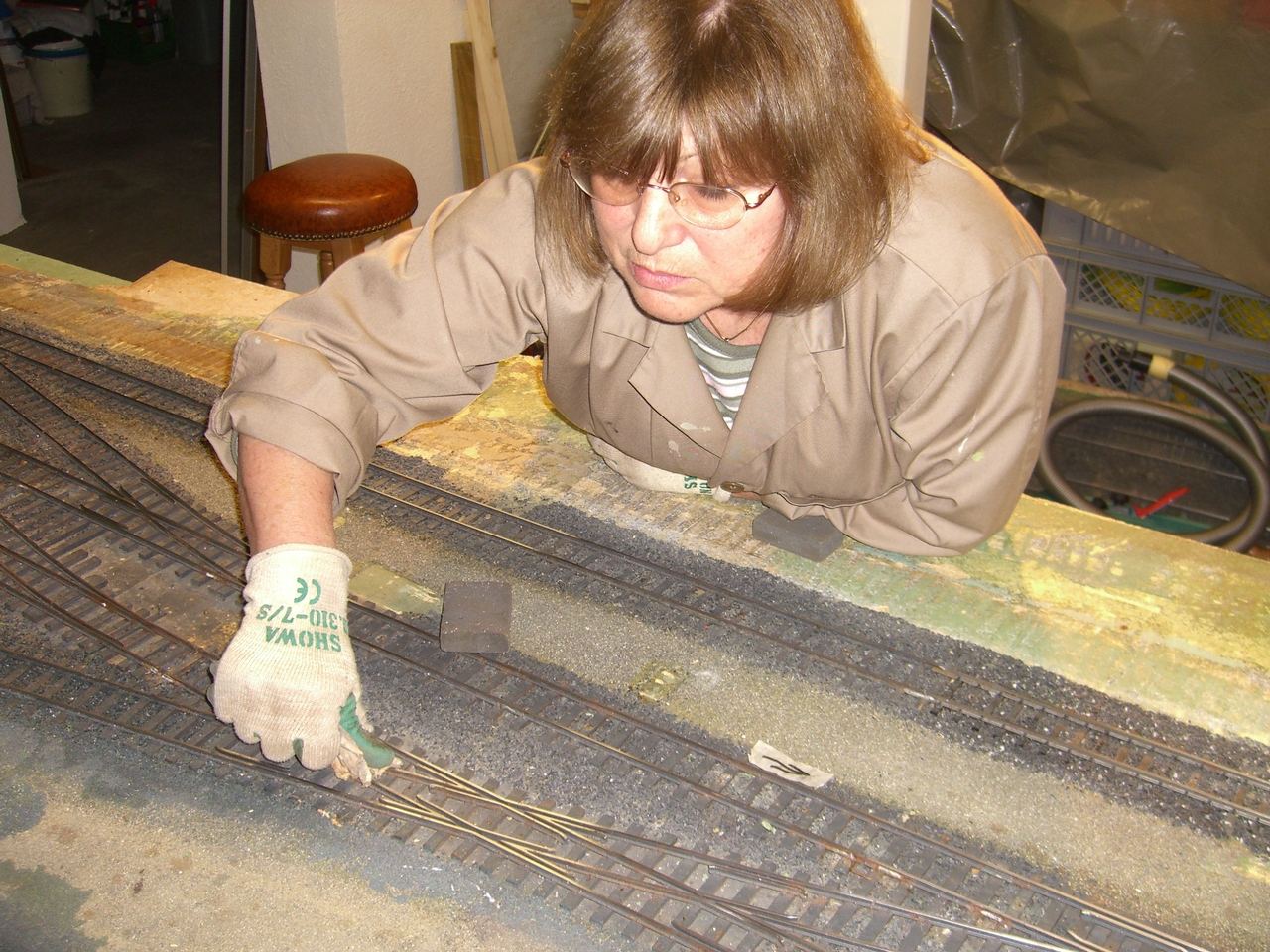 • Die übel zugerichteten Gleise werden wieder hergerichtet.